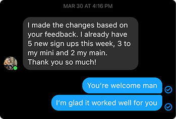 Of course as a funnel builder myself, I’d love to work with you to implement the feedback if you want to save time and focus on helping more people, but that’s totally up to you.